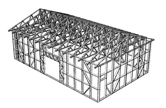 ЛСТК каркас НАВІС ДЛЯ АВТО З ТЕХН. ПРИМІЩЕННЯМ